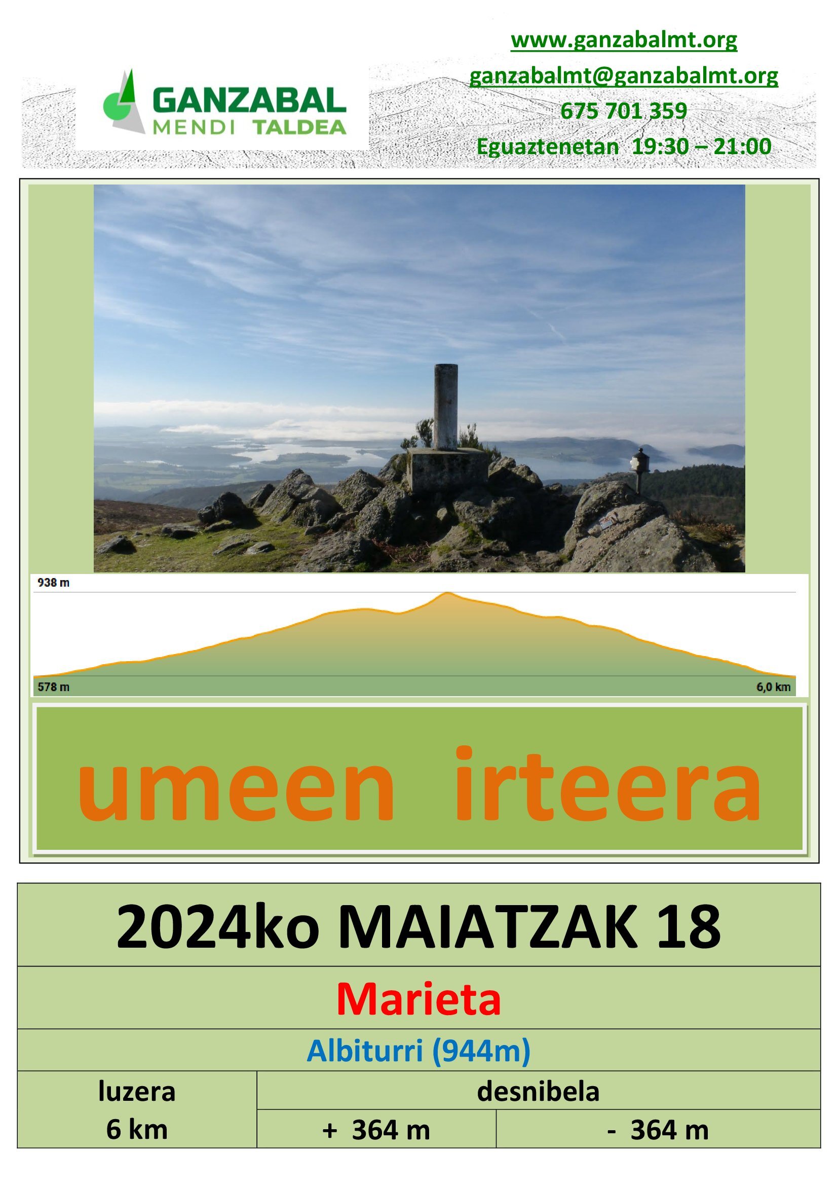 2024ko, maiatzak 18, umeen irteera “Marieta – Albiturri (944m.)”