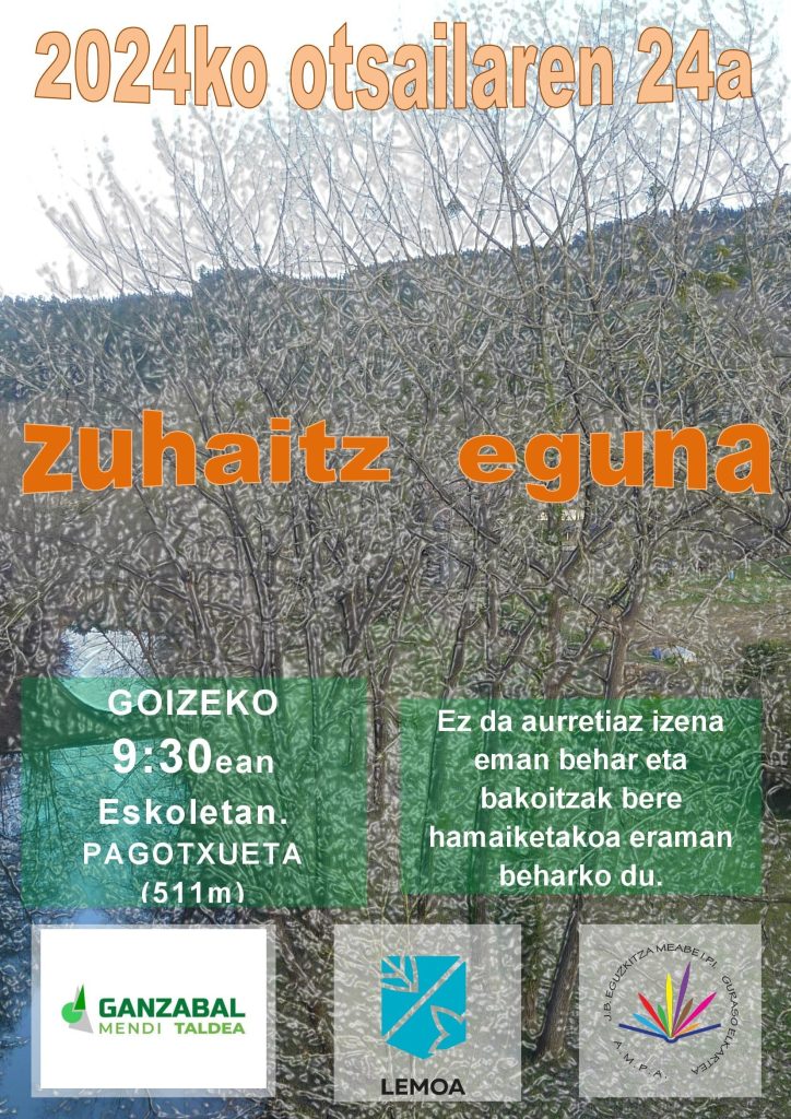 2024ko, otsailaren 24a, “Zuhaitz eguna”, 9:30ean Lemoako eskoletan.