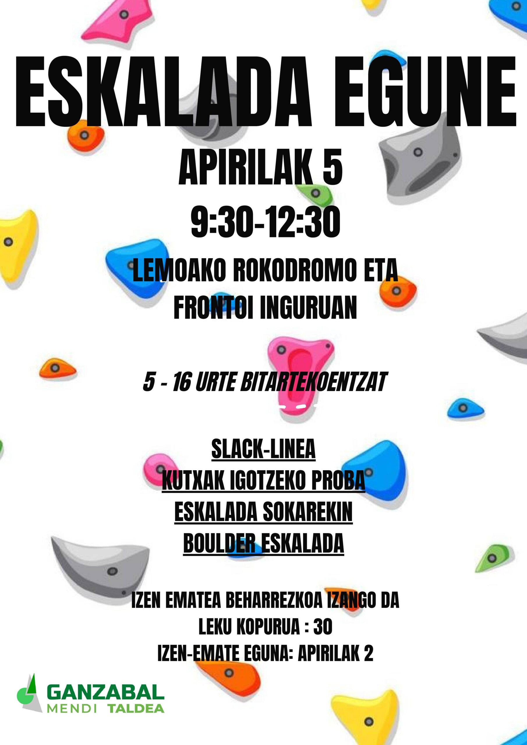 Informacion en PDF: https://www.ganzabalmt.org/wp-content/uploads/2025/03/ESKALADA-EGUNA-APIRILAK-5.pdf
