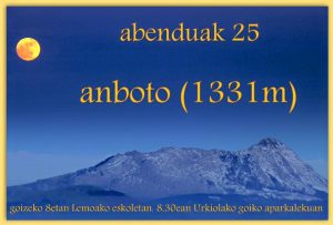 25 de diciembre, «Anboto (1.331 m.)», a las 8:00 en las escuelas de Lemoa, 8:30 en Urkiola, aparcamiento de arriba.