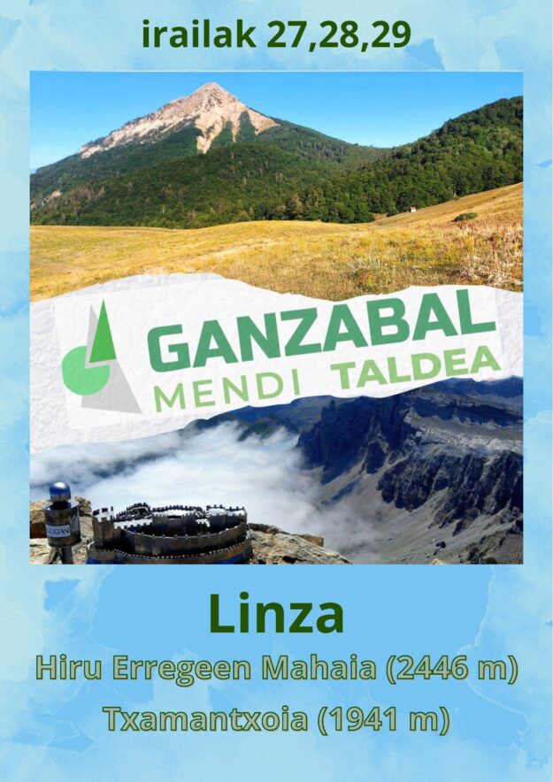 Informazioa PDFan: https://www.ganzabalmt.org/wp-content/uploads/2024/08/Linza-check-list.pdf Mapak: https://www.ganzabalmt.org/wp-content/uploads/2024/08/Hiru-Erregeen-Mahaia-mapa.pdf https://www.ganzabalmt.org/wp-content/uploads/2024/08/Txamantxoia-mapa.pdf Links: https://es.wikiloc.com/rutas-alpinismo/linzako-aterpea-hiru-erregen-mahaia-linzako-aterpea-177564569 https://es.wikiloc.com/rutas-senderismo/linzako-aterpea-pakiza-txamantxoia-asolaze-177564800