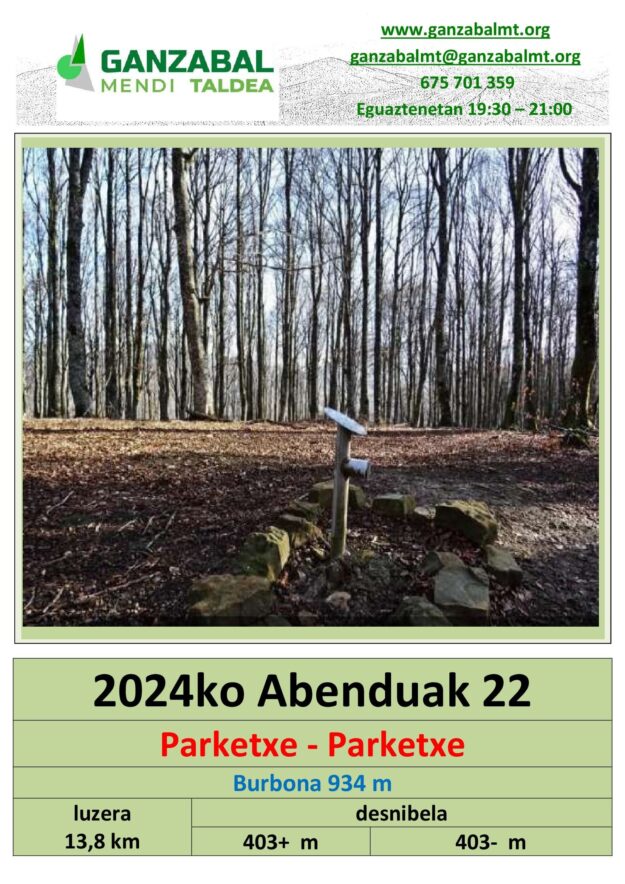 2024ko, abenduak 22, goizeko jarduera, “Parketxea – Burbona (934m)” Goizeko 8:00etan Lemoako Eskoletan (kotxeetan joango gara)